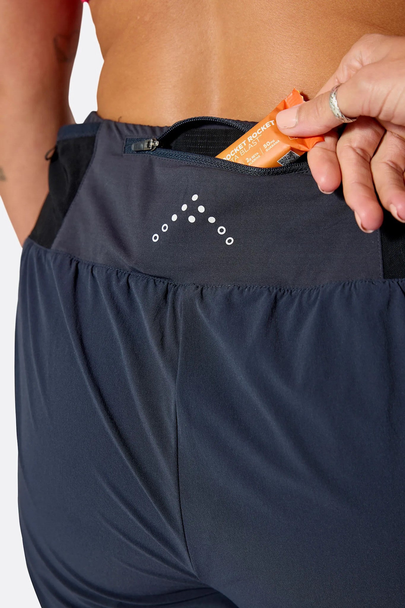 These are the shorts for mountain runners who seek a little more protection, with a supportive inner liner short, versatile length of 5 inches, and body-contouring fit. The lightweight, fast-drying stretch fabric gives you the mobility you need to negotiate scree slopes and rock-scattered trails, while the host of secure pockets allows you to leave your backpack behind on shorter runs. Lightweight Matrix™ softshell fabric is stretchy, quick-drying, and allows unhindered motion. Integrated zipped back yolk pocket, perfect for phone or gels. Supportive inner shorts providing great stretch and recovery, with a silicone grip on the lower hem to keep them in place. 2 thigh mesh stash pockets on liner short, perfect for phone or gels. The comfortable, body-hugging waistband is easy to adjust and stays secure over bumpy terrain. Ditch the backpack on shorter runs with multiple storage options. Reflective branding throughout. Built with a side split for total freedom of movement.