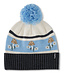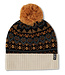 Cuffed beanie with jacquard design and pom on top, logo clip label at side.