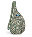 This cotton canvas sling features an adjustable rope shoulder strap with side release buckle, two vertical zip compartments, two key or cell phone pockets, and a padded back with KAVU embroidery.